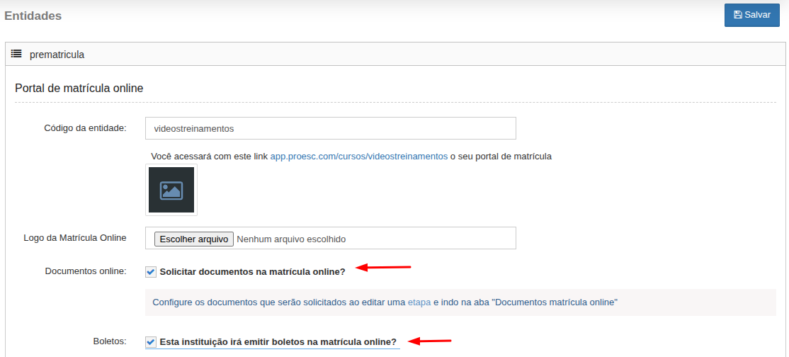 Essa funcionalidade pode ser usada tanto para Matrícula Online quanto para Rematrícula.