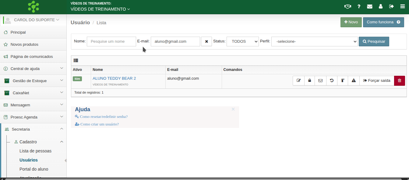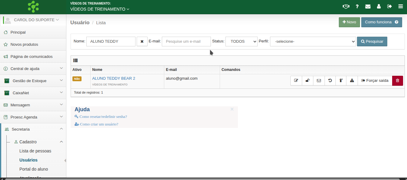 ATENÇÃO: O processo de inativar ou alterar senha DESCONECTA os usuários de todos os dispositivos que ele tenha acessado com a sua conta, tendo ele que acessar o sistema novamente com e-mail e senha. Saiba mais sobre o processo de alteração de senha
