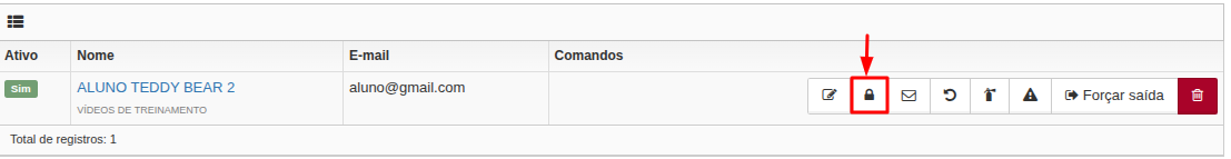 Em seguida, na coluna de 'Comandos' à direita da página e clique no ícone do cadeado fechado, para desativar o usuário.