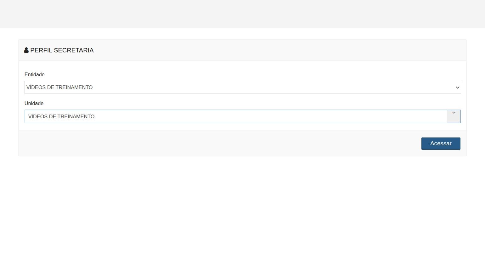 1. Após realizar o login no sistema, selecione sua entidade e unidade e clique em Acessar.