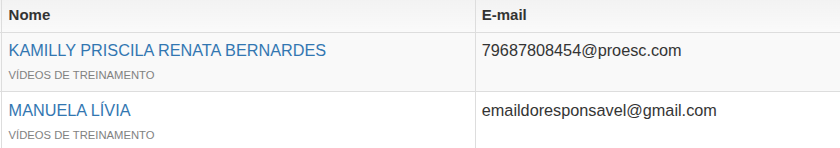 No exemplo que vamos ver neste passo a passo Manuela é responsável e Kamilly Priscila e sua filha, nesse caso para visualizar o financeiro e necessário acessar com o e-mail da responsável vinculado ao seu usuário.