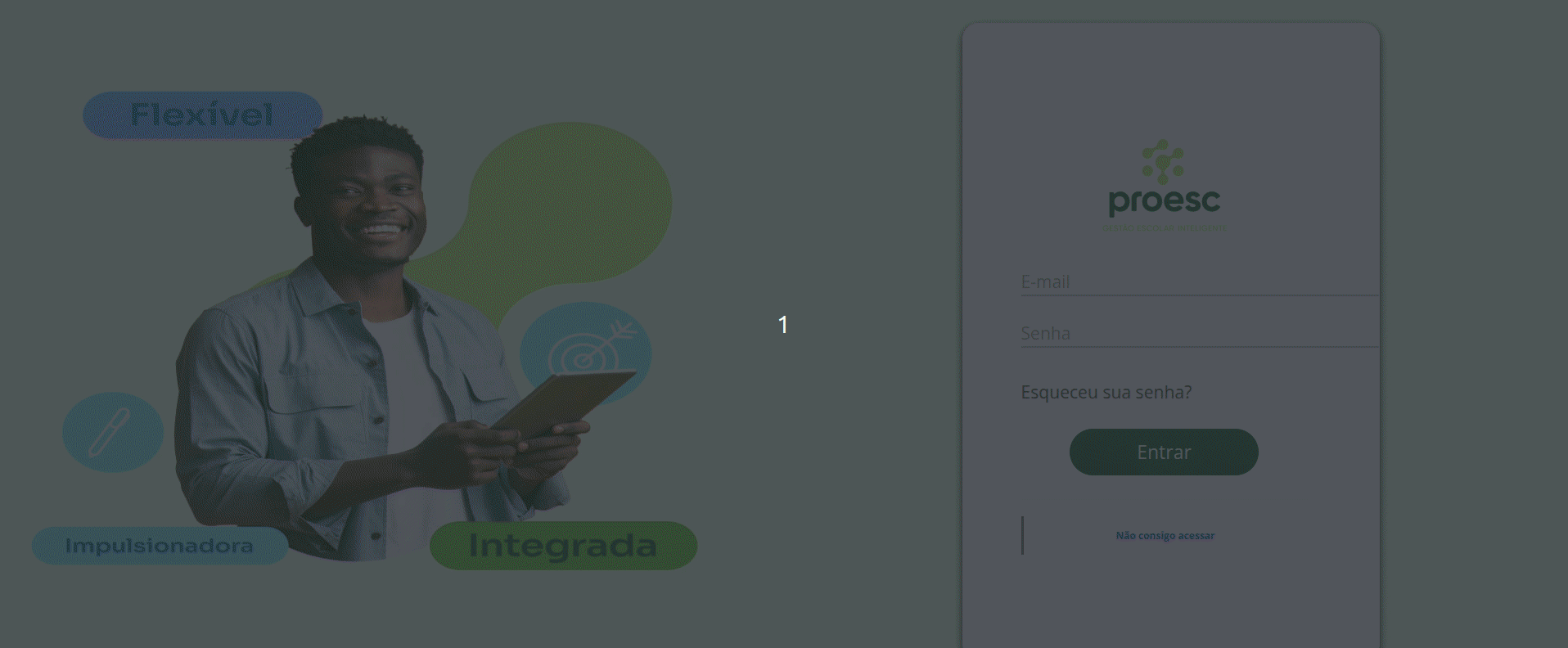 1. Acesse o sistema com seu e-mail de responsável e senha no link: https://app.proesc.com/login
