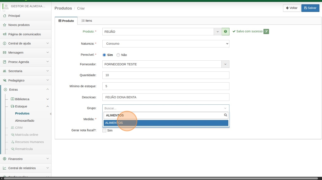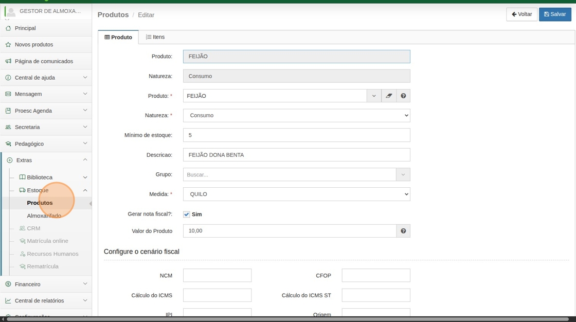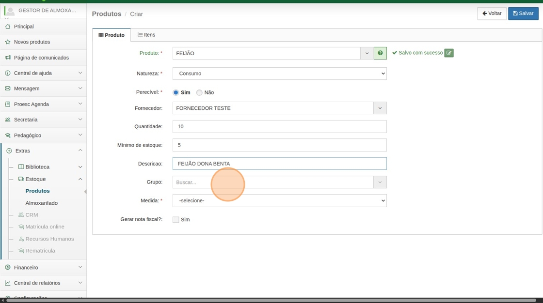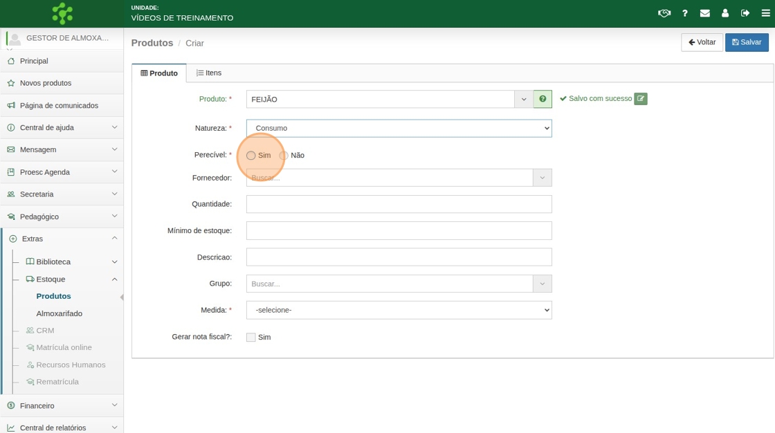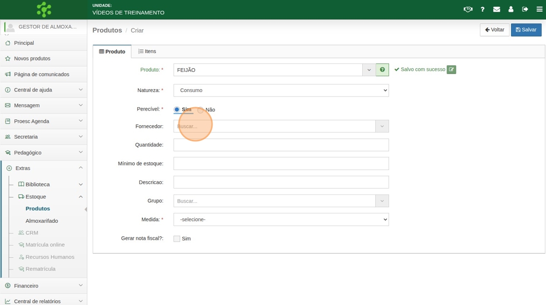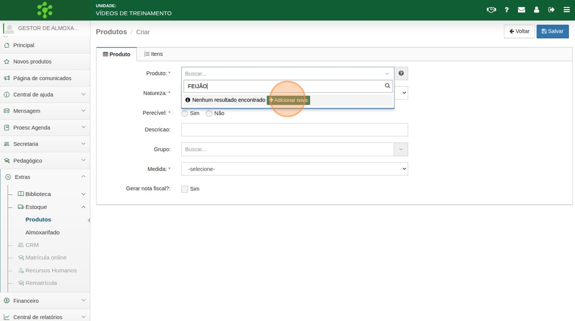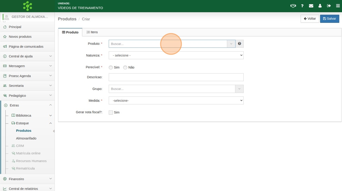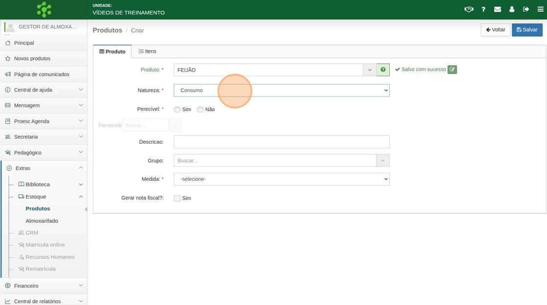 9. Em seguida selecione a natura do produto se é um Produto de consumo ou Patrimônio