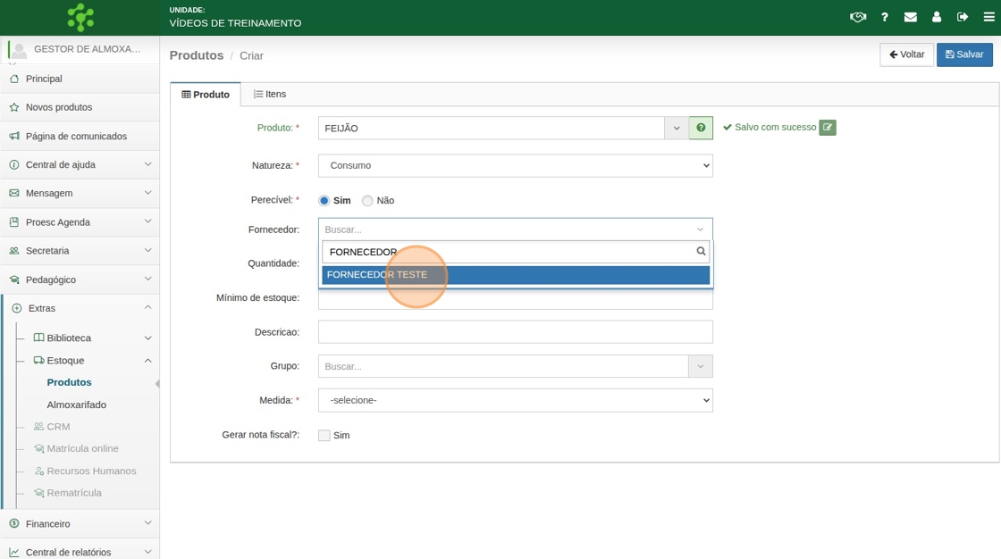 12. Selecione o seu fornecedor "FORNECEDOR TESTE"