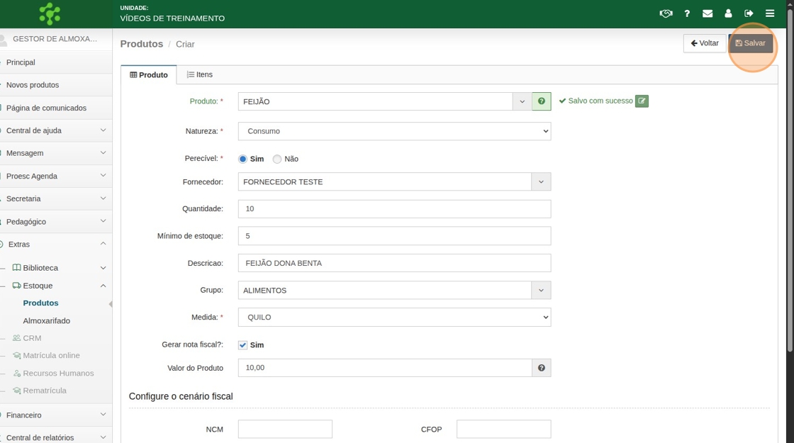 22. Após o preenchimento de todos os campos clique em "Salvar"