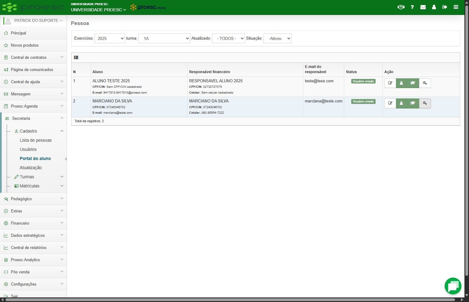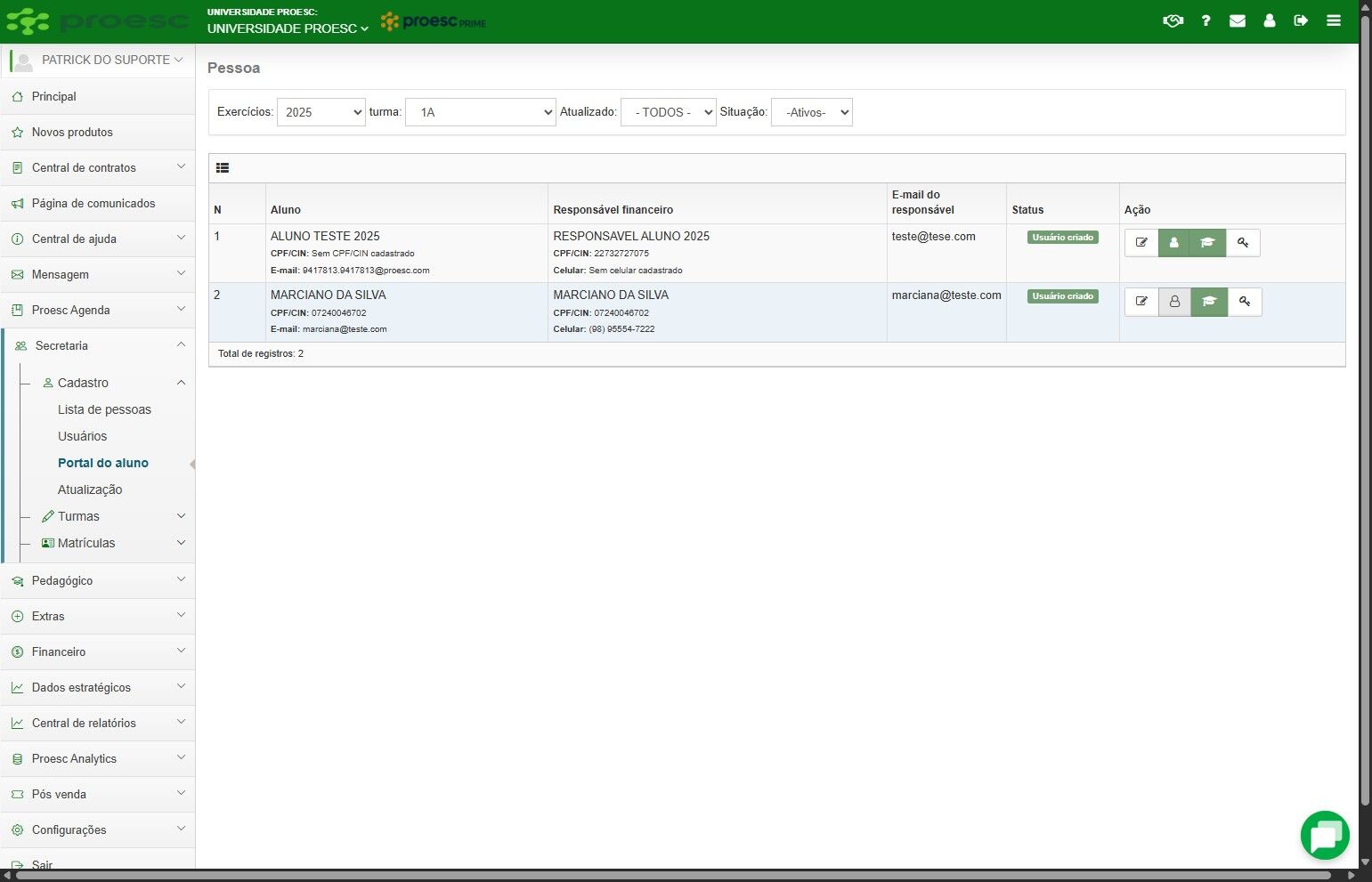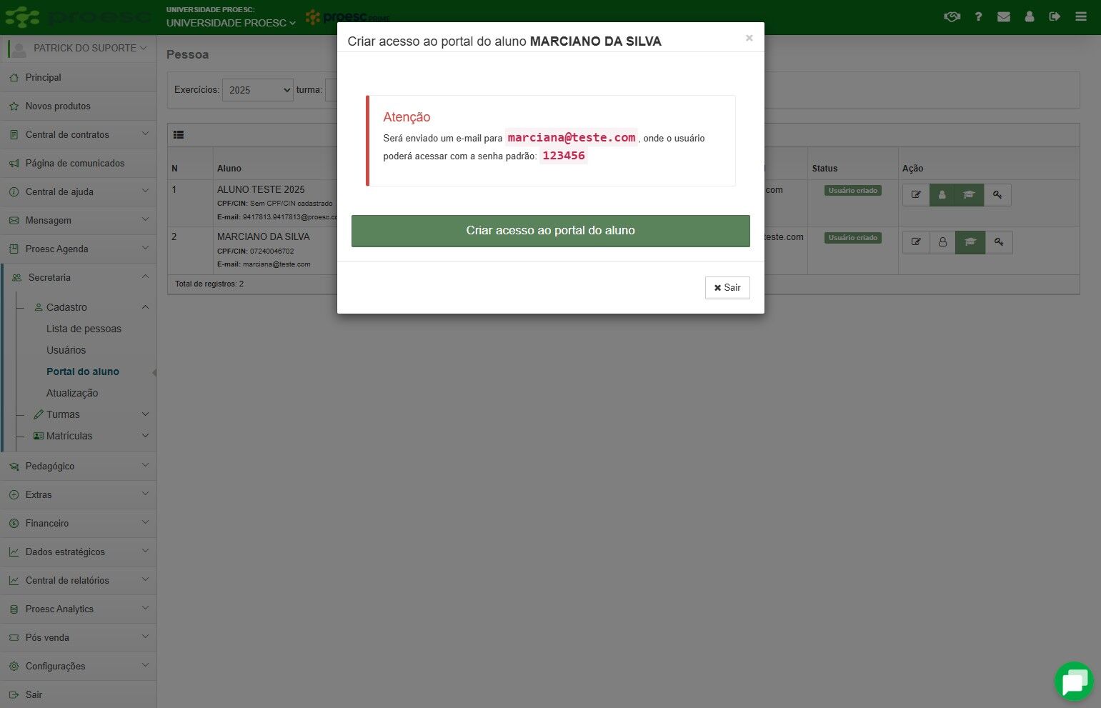 Observação: Essa ação só pode ser realizada para usuário com perfil 'SECRETARIA'.