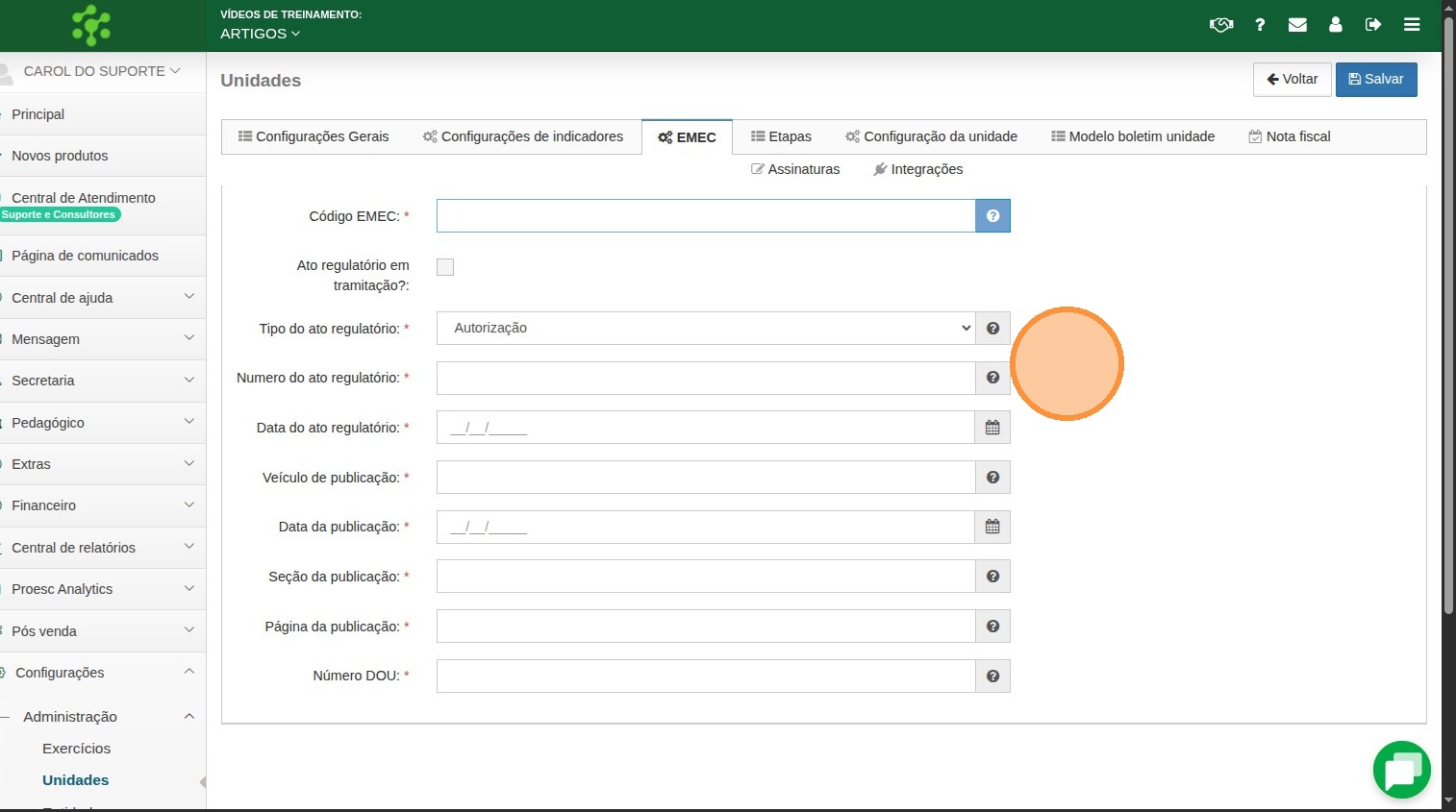2. Configurando a Aba e-MEC na Unidade