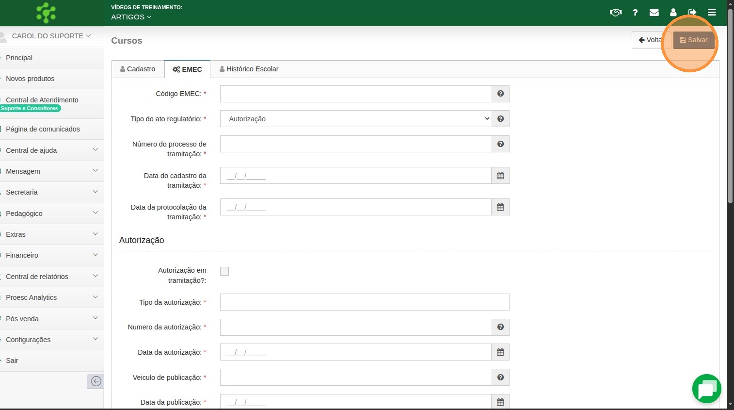 13. Após prencher os campos necessário clique em salvar