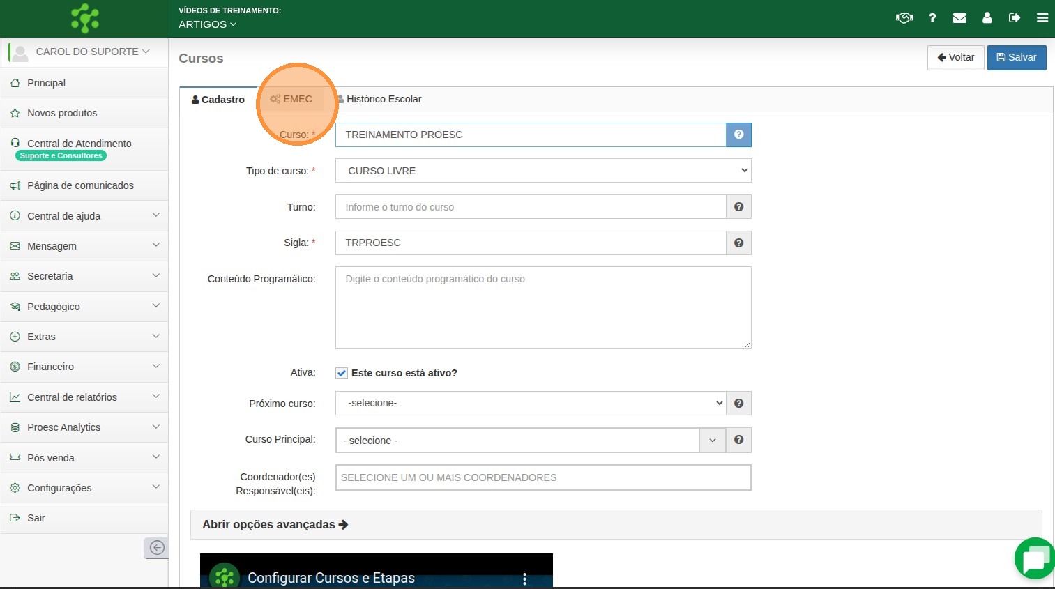 6. Configurando a Aba e-MEC no Curso