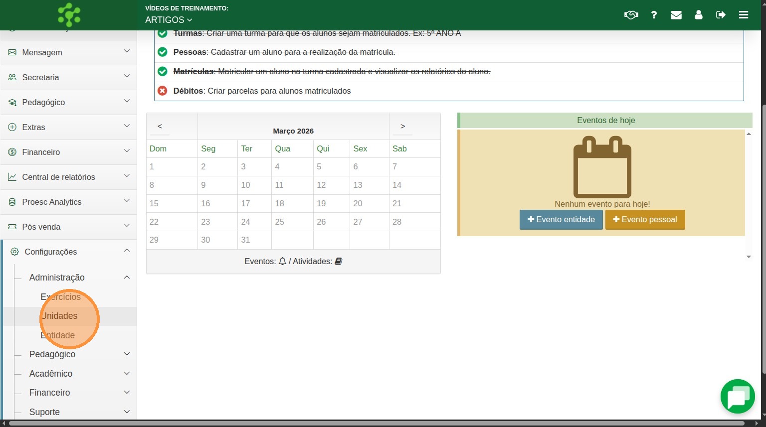 Acesse o menu Configurações → Administração→ Unidades