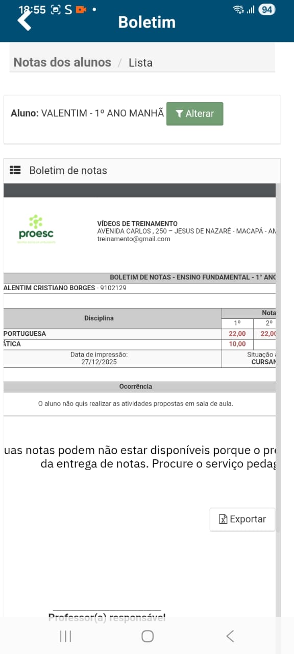Pronto, agora você já pode visualizar as notas: